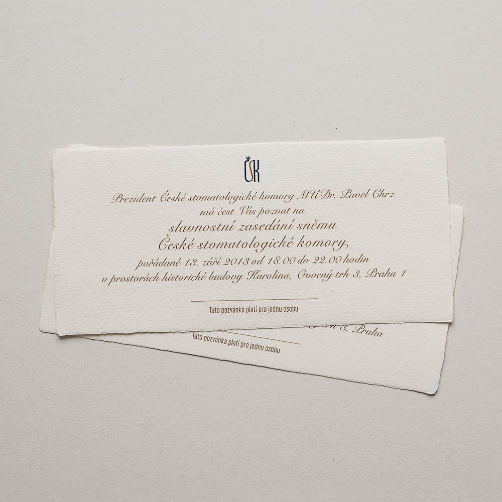 Pozvánka České stomatologické komory1.7.2015/v Diplomy etc/přidal Robert Novak Pozvánky na ručním papíru formátu 11 x 21 cm. https://www.ateliermanufactura.com/wp-content/upLoads/Atelier-Manufactura.gif 0 0 Robert Novak https://www.ateliermanufactura.com/wp-content/upLoads/Atelier-Manufactura.gif Robert Novak2015-07-01 17:50:362016-03-13 09:59:10Pozvánka České stomatologické komory