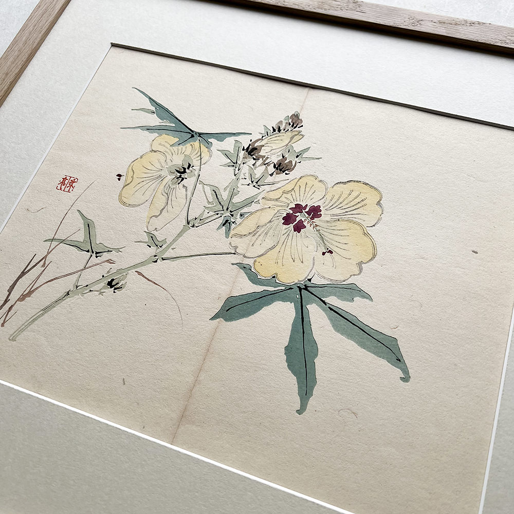 Originální dřevořez je na japonském ručním papíru. Barvy jsou ostré a jasné, perfektní soutisk barev. Na tisk okvětních lístků ibišku použil tiskař náročnou techniku rozmývání tiskové barvy na štočku tzv. lavírování (bokashi), kterým docílil postupnou gradaci odstínů žluté barvy. Tisk je příkladem Takiho jednoduché, ale detailní malby s nádhernou kompozicí a především precizní práce soudobého tiskaře.